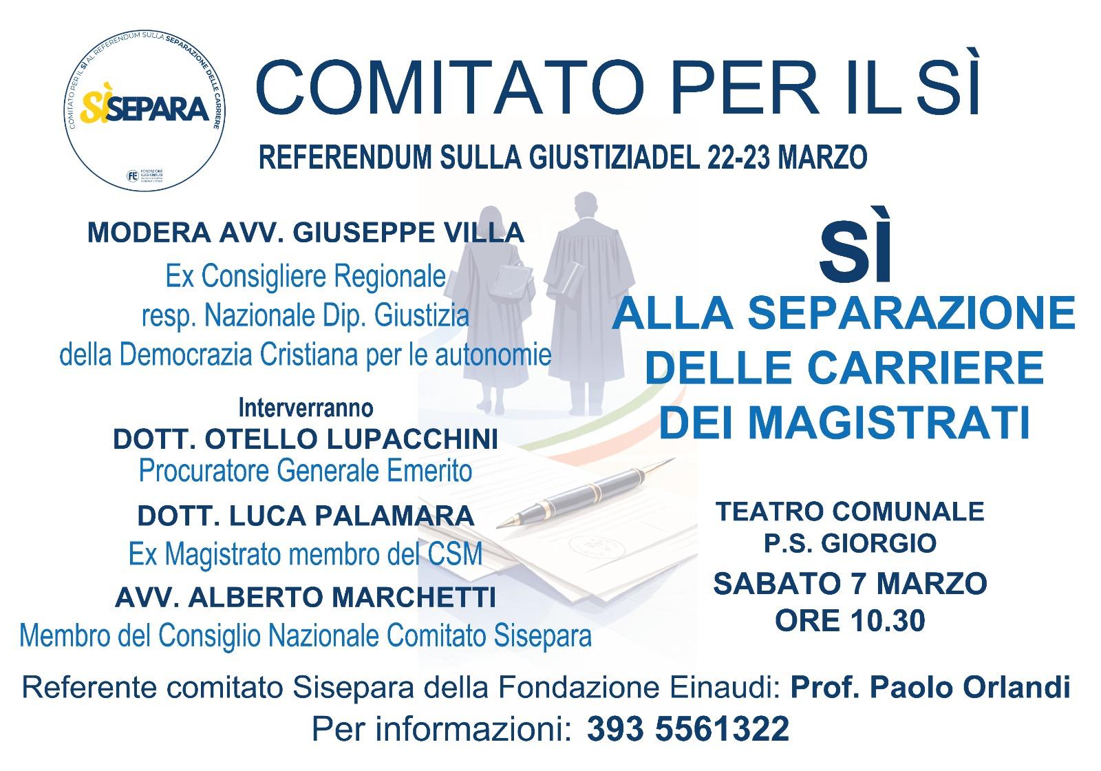 Giovedì 12 marzo 2026 ore 21:00, Palazzo del Ridotto Piazza Almerici 12, Cesena INTERVENGONO Avv. Antonio Di Pietro, Comitato Sì Separa Sen. Andrea Cangini, Comitato Sì Separa Dott.
