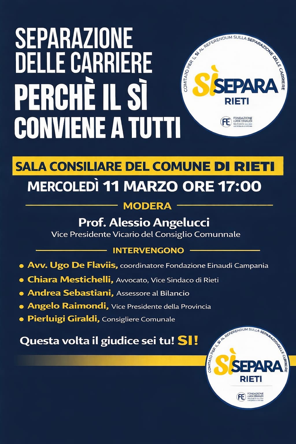 6 marzo 2026, ore 16:30 – Doubletree by Hilton Hotel, Trieste Interverranno per il Sì: Dott. GIOVANNI SANSONE, già Presidente del Tribunale di Gorizia ANDREA BITETTO