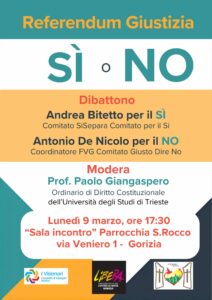 Lunedì 9 marzo, ore 17:30 – “Sala incontro” Parrocchia S.Rocco – via Veniero 1 – Gorizia Dibattono Andrea Bitetto per il Sì, Comitato SiSepara Comitato per il