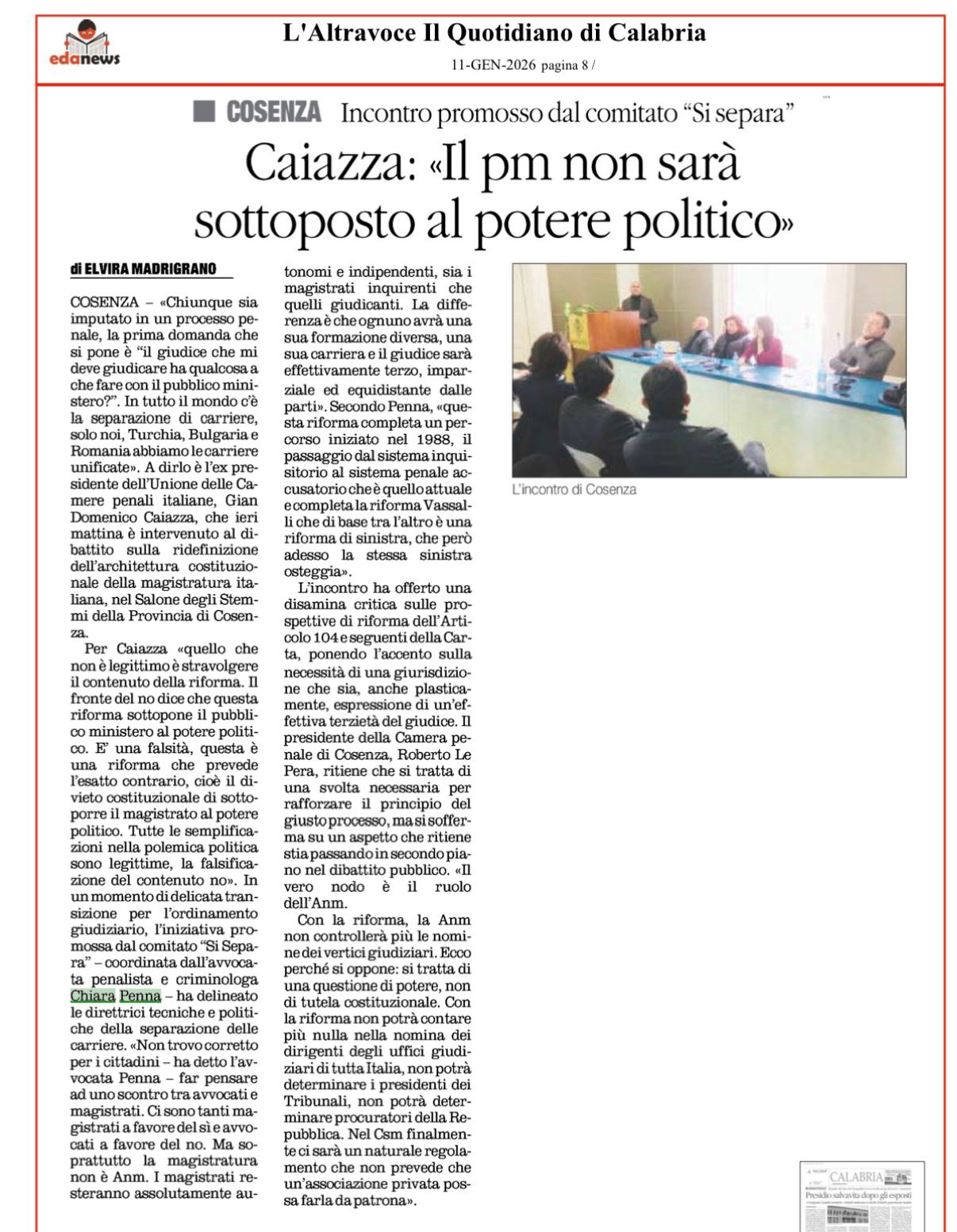Caiazza: «Il pm non sarà sottoposto al potere politico»