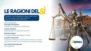 SABATO 28 FEBBRAIO 2026, ORE 16:00 – SALA PALADIN – PALAZZO MORONI – PADOVA INTERVERRANNO Giuseppe Benedetto, Presidente Fondazione Luigi Einaudi Andrea Ostellari, Sottosegretario di Stato alla Giustizia