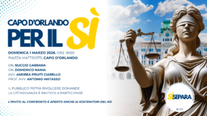 DOMENICA 1 MARZO 2026, ORE 18:00 PIAZZA MATTEOTTI, CAPO D’ORLANDO ON. NUCCIO CARRARA ON. DOMENICO NANIA AVV. ANDREA PRUITI CIARELLO PROF. AVV. ANTONIO MATASSO IL